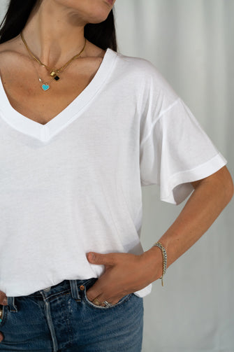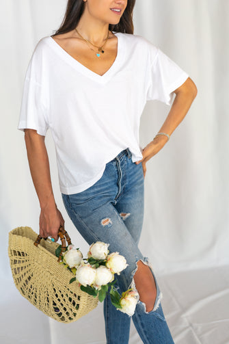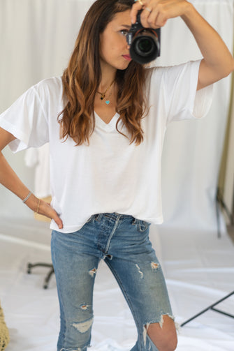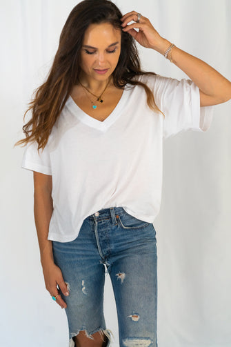 Every girl needs a flattering t-shirt for her wardrobe— hits at the hip, v-neck, and incredibly soft.